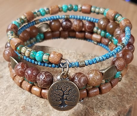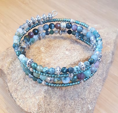 Gemstone Stacking Wrap Bracelet in Light Blue
